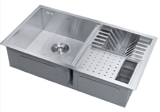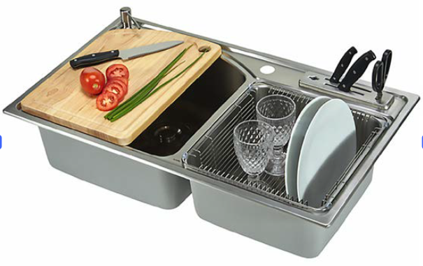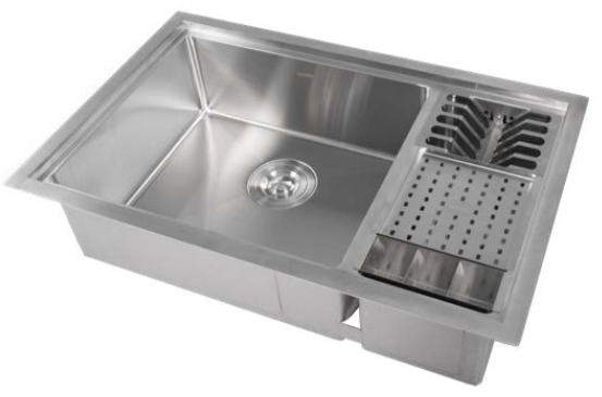 Seu tamanho oferece ótimo aproveitamento de espaço e alta durabilidade, além dos acessórios para escorrer louças e utensílios que transformam a cuba direita em uma calha úmida.